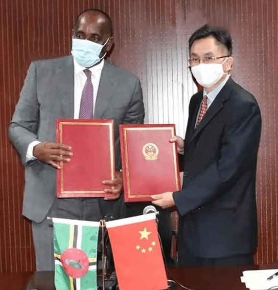 斯凱里特和羅松濤簽署交接證書(圖片由駐多米尼克使館提供)