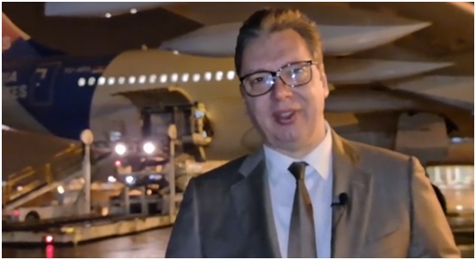 據塞爾維亞媒體報道,當地時間3月5日,第三批中國國藥集團生產的新冠疫苗運抵塞爾維亞首都貝爾格萊德。塞爾維亞總統武契奇再次親赴機場迎接。視頻畫面顯示,當晚貝爾格萊德下著小雨。