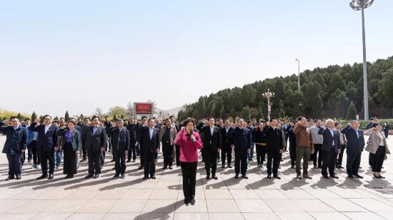 與會人員在革命圣地西柏坡舉行了黨日活動。全體黨員向五大書記雕像敬獻花籃,重溫入黨誓詞,并集體合唱《沒有共產(chǎn)黨就沒有新中國》。