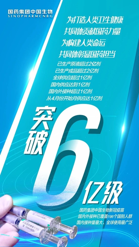 截至目前,國藥集團中國生物累計生產新冠疫苗原液超過2億劑,生產分裝新冠疫苗突破2億劑,全力以赴為實現疫苗的可及性和可擔負性作出中國貢獻!