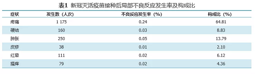 基于監測到的519543人次接種信息,共監測不良反應信息5164條,北京生物制品研究所、武漢生物制品研究所生產的新冠滅活疫苗總不良反應發生率為1.06%,局部不良反應發生率為0.37%,全身不良反應發生率為0.69%。局部不良反應以接種部位疼痛、接種部位腫脹為主要表現,發生率分別為0.24%、0.05%,全身不良反應以疲勞、頭痛、發熱、咳嗽、食欲不振為主要表現,未見嚴重不良反應。