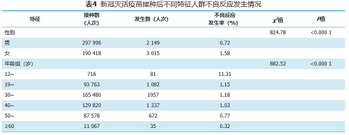 分析不同特征人群接種后不良反應