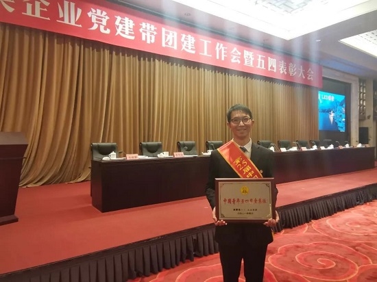 國藥集團中國生物武漢生物制品研究所團委書記鄒江龍代表所在集體領取中國青年五四獎章。