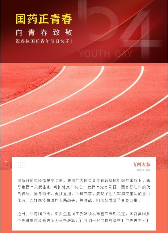 國藥集團(tuán)一致藥業(yè)股份有限公司團(tuán)委。面對(duì)突如其來的新冠肺炎疫情,國藥一致團(tuán)委迅速制定下發(fā)青春戰(zhàn)疫發(fā)倡議書,動(dòng)員各級(jí)組建200多個(gè)志愿服務(wù)隊(duì)、80多個(gè)青年突擊隊(duì),投身疫情防控一線。著力凝聚青年,連續(xù)舉辦三屆國藥一致五四青年節(jié)系列活動(dòng),如五四青年健步行、青年大學(xué)習(xí)、新時(shí)代青年說、追尋革命足跡、亮青春身份、亮青春宣言等活動(dòng)。充分發(fā)揮橋梁紐帶作用,積極協(xié)助公司舉辦各類大型文體活動(dòng),如國藥一致員工生日會(huì),國藥一致第九屆職工運(yùn)動(dòng)會(huì),國藥一致2018、2019年總結(jié)表彰大會(huì),國藥一致上市20周年慶典活動(dòng)和供應(yīng)商交流大會(huì)等。