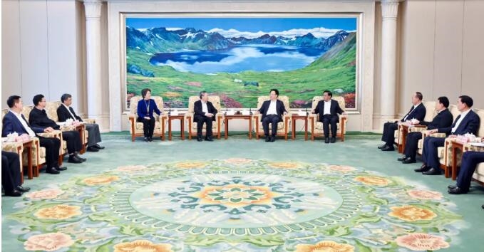 2021年6月4日,國(guó)藥集團(tuán)董事長(zhǎng)、黨委書(shū)記劉敬楨,黨委副書(shū)記楊柳在長(zhǎng)春與吉林省委書(shū)記景俊海,省委副書(shū)記、省長(zhǎng)韓俊會(huì)談。
