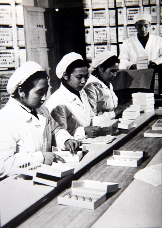 ▲1958年,國藥集團中國生物疫苗包裝車間的職工們正在緊張的工作中