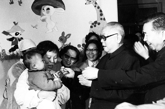 ▲八九十年代,政府對小兒麻痹癥的預防非常重視,很多領導人,包括江澤民、李鵬、朱镕基、李瑞環等人都曾到北京市幼兒園給孩子們喂“糖丸”。“糖丸”全稱為脊髓灰質炎減毒活疫苗。圖為1985年9月,國家主席李先念到北京松樹幼兒園,給孩子們喂“糖丸”
