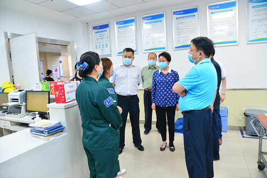 石晟怡一行還深入國藥東風總醫院、花果醫院與醫護人員親切交流,詳細了解傷員救治情況,并對全體醫務人員爭分奪秒,不辭辛苦,默默奉獻的職業精神,以及國藥東風醫療團隊所表現出的高質量、高效率、高標準的應急處置能力給予了高度肯定。