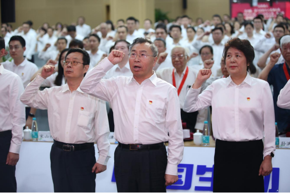 會議最后在雄壯的國際歌聲中結(jié)束。國藥集團(tuán)系統(tǒng)全體黨員及黨外干部代表共計2萬余人,在總部主會場和各地1500余個視頻分會場參加會議。