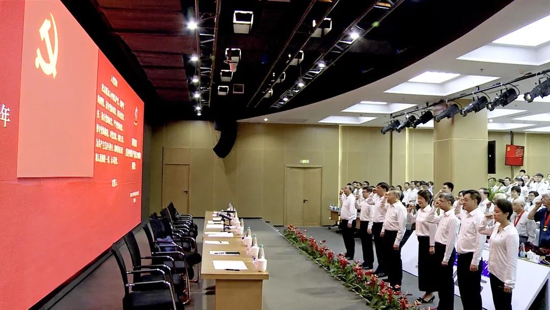 劉敬楨同志帶領(lǐng)全體與會黨員面向鮮紅的黨旗,舉起右手,莊嚴(yán)地重溫入黨誓詞。