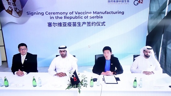 北京時間7月12日,國藥集團中國生物、G42集團與塞爾維亞新冠疫苗合作簽約儀式在中國北京、阿聯酋阿布扎比、塞爾維亞貝爾格萊德三地以視頻方式舉行。塞爾維亞、國藥集團中國生物、阿聯酋G42集團三方共同簽署新冠滅活疫苗合作備忘錄,啟動塞爾維亞新冠疫苗原液分裝項目建設。塞爾維亞產新冠疫苗將會在本國疫情防控及全球共同戰疫中發揮重要作用。
