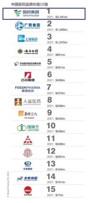 7月,國際著名品牌價值評估機構英國Brand Finance公司發(fā)布《2021中國醫(yī)藥品牌價值和品牌強度評估報告》,首次對15個最具價值和最強的中國醫(yī)藥品牌進行了分析和排名,國藥集團位列中國醫(yī)藥品牌首位,品牌價值高達32億美元。這也是繼此前榮獲Brand Fiance全球最具價值醫(yī)藥品牌TOP25中第11位、亞洲醫(yī)藥企業(yè)品牌價值第一后,國藥集團再一次登上該權威機構榜單,充分展示了國藥強勁的品牌價值和綜合實力。