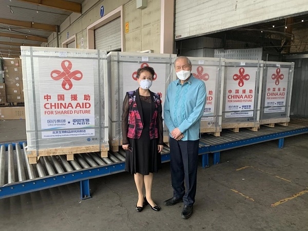 北京時間8月19日中午,此次援菲疫苗的交付儀式在北京首都國際機場舉行。國藥集團副總經理、國藥國際董事長石晟怡與菲律賓駐華大使羅馬納共同簽署了交接文件。菲駐華使館相關官員,國藥國際總工程師付強等參加儀式。