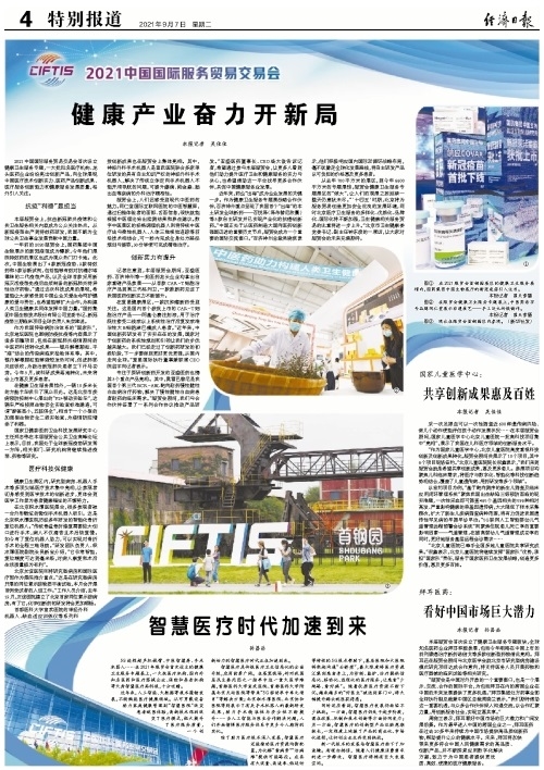 2021中國國際服務貿易交易會首次設立健康衛生服務專題,一大批知名醫療機構、龍頭醫藥企業紛紛亮出創新產品,向全球展現中國醫療技術創新實力、醫藥產品創新成果、醫療服務創新能力和健康服務發展質量,格外引人關注。