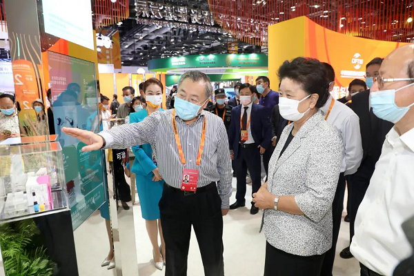 8月30日展會開始前,國務院副總理、組委會主任委員胡春華和蔡奇、陳吉寧等領導同志組織服貿會綜合演練,提出要在“成就展”開篇展出“全球抗疫的中國智慧”,明確指示,要將國藥集團的抗疫成果放在1號展位1號展臺,作為中國服務貿易發展成就的首要示范案例,“講好中國抗疫故事”。
