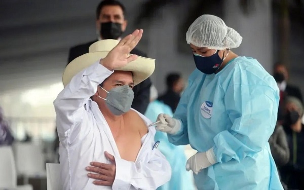 8月6日,秘魯總統(tǒng)卡斯蒂略在首都利馬接種國藥集團(tuán)中國生物新冠疫苗。