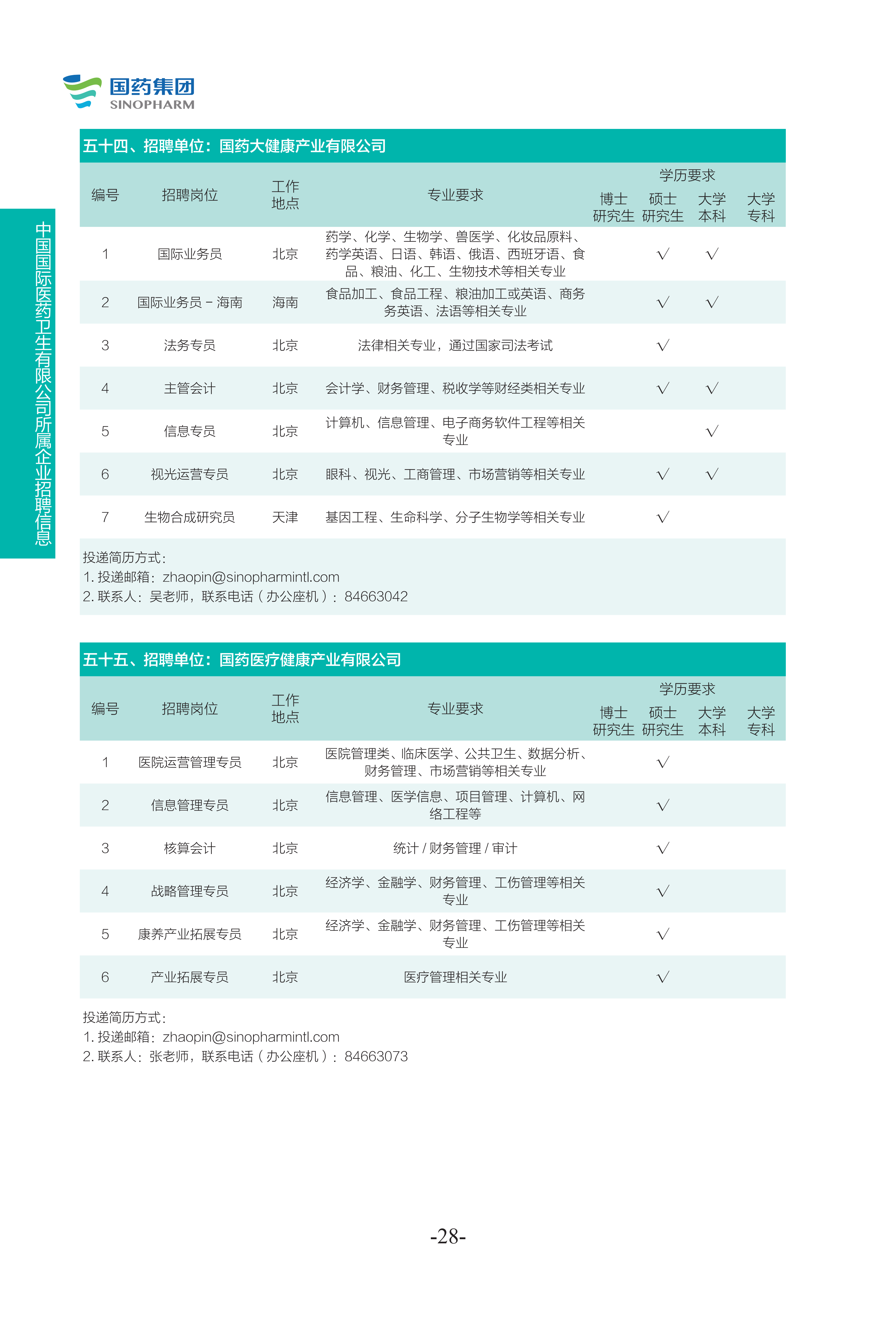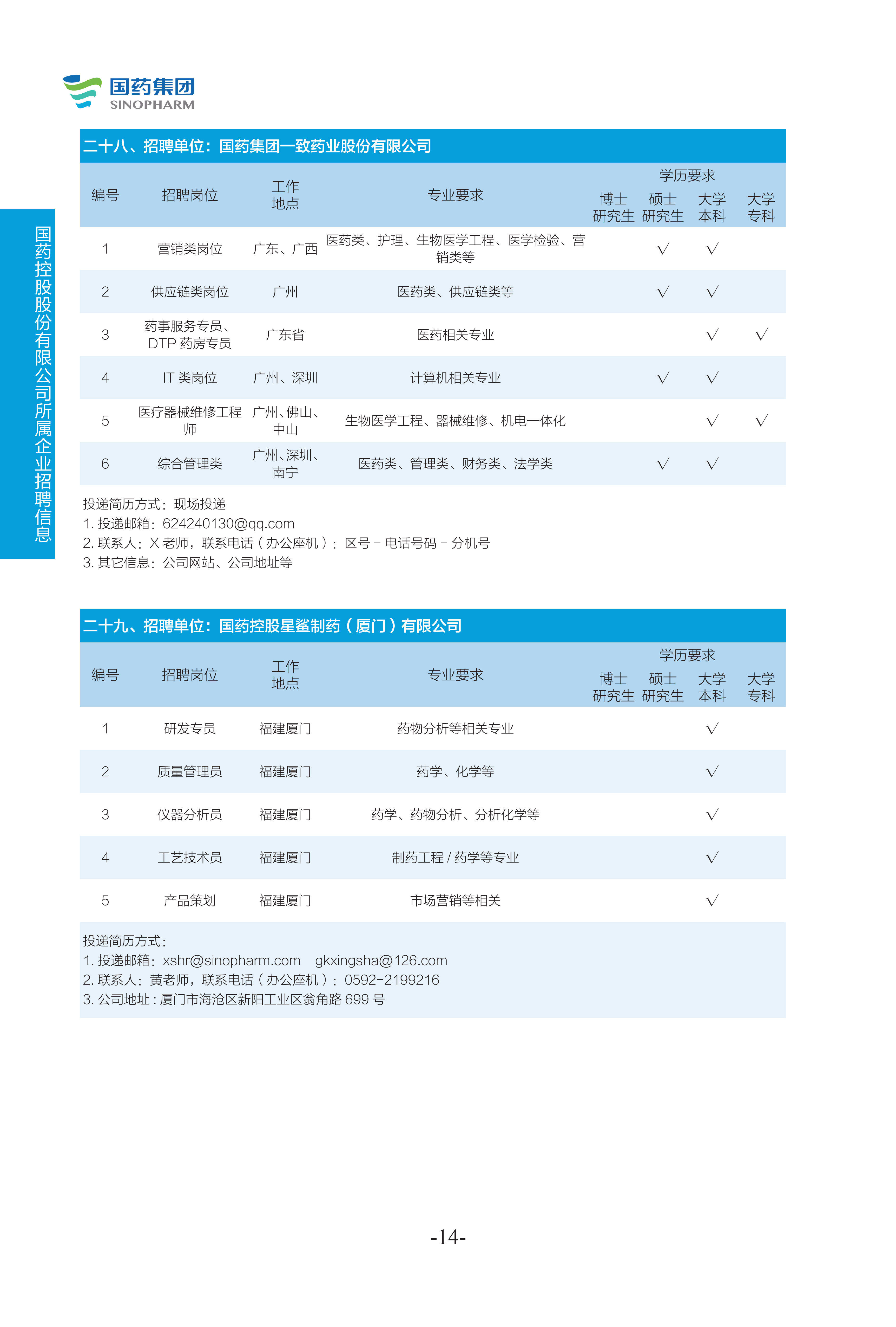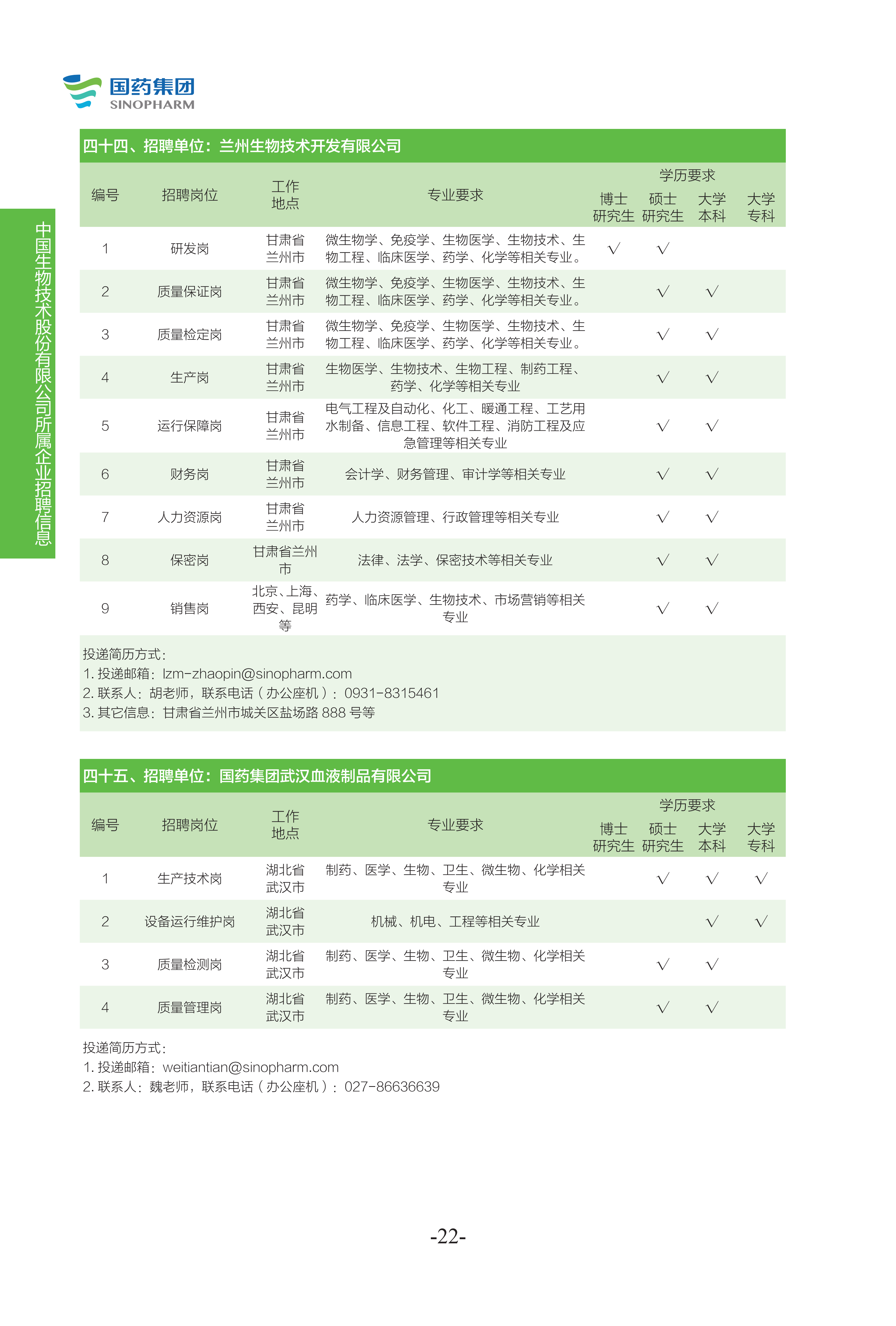 國藥集團2022年度校園招聘