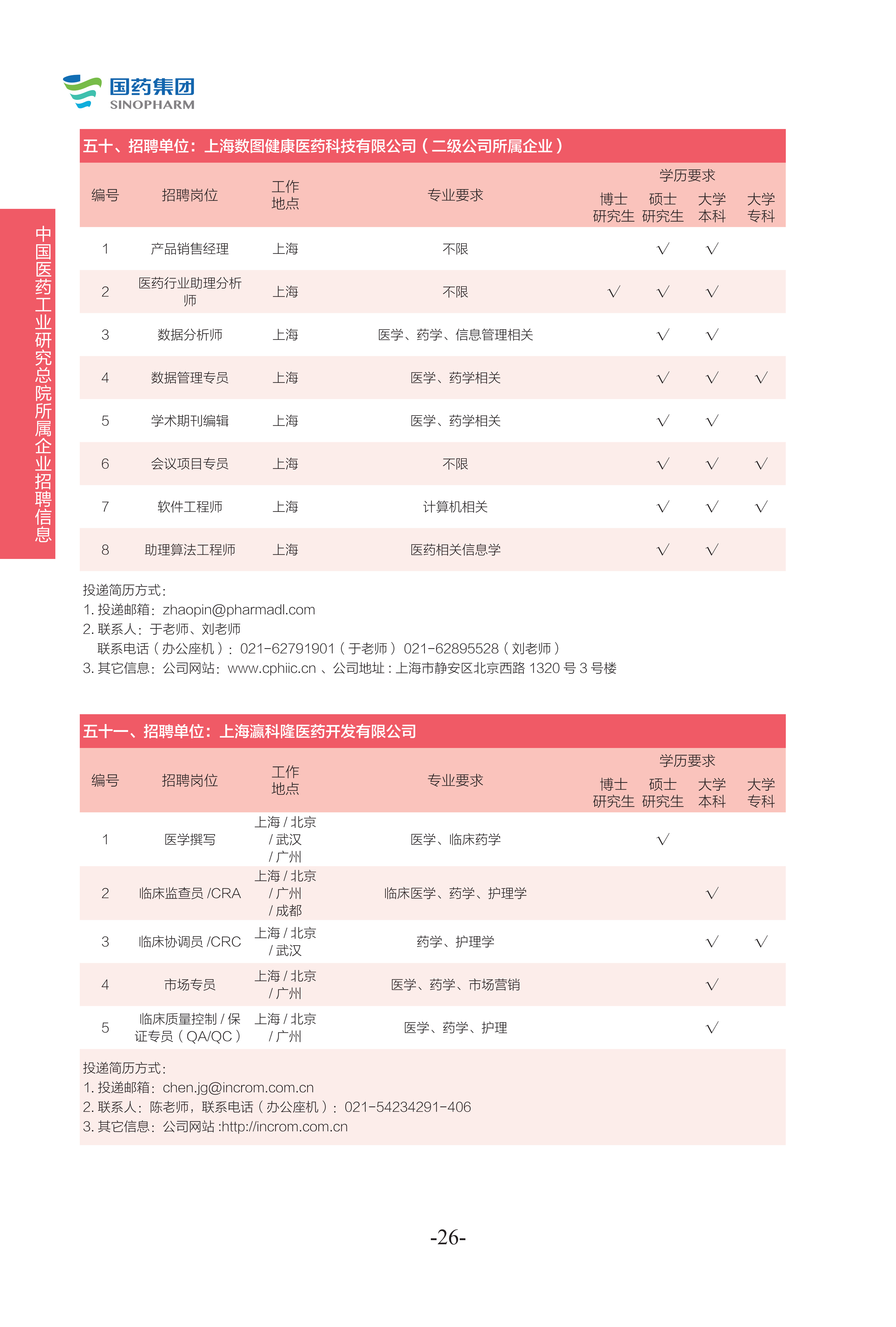國藥集團2021年校園招聘手冊