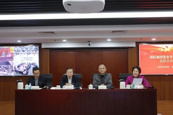 中央企業黨史學習教育第十指導組組長齊曉飛傳達國資委黨史學習教育總結會議精神,副組長張鐵甲到會指導。國藥集團黨委書記、董事長劉敬楨作總結講話,黨委副書記、工會主席楊柳主持會議。