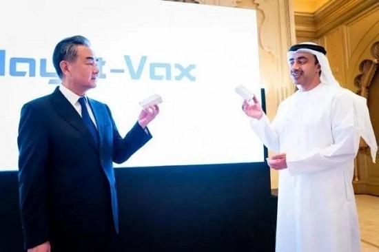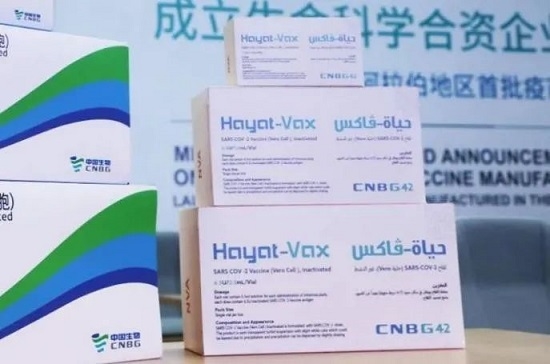 2021年3月28日,中國與阿聯酋合作新冠疫苗原液灌裝生產線項目啟動儀式,在中國和阿聯酋同步舉行。中國國務委員兼外交部長王毅,阿聯酋內閣部長兼外交與國際合作部長謝赫•阿卜杜拉•本•扎耶德•阿勒納哈揚在阿聯酋阿布扎比儀式現場,啟動并連線國藥集團中國生物與G42集團合作新冠疫苗原液灌裝生產車間,共同見證阿聯酋與阿拉伯地區首批新冠滅活疫苗正式分裝下線,國藥集團董事長劉敬楨視頻出席儀式并致辭。