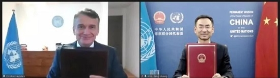 2021年9月17日,中國政府向聯合國維和人員捐贈國藥集團中國生物新冠疫苗交付儀式以視頻方式舉行,中國常駐聯合國副代表耿爽與聯合國助理秘書長桑德斯分別代表中國政府和聯合國簽署了疫苗援助交接證書,桑德斯代表古特雷斯秘書長和聯合國系統向中國政府的慷慨援助表示感謝。同日,用于此次捐贈的國藥集團新冠疫苗在北京啟運,優先用于保障在非洲任務區執行任務的聯合國維和人員。
