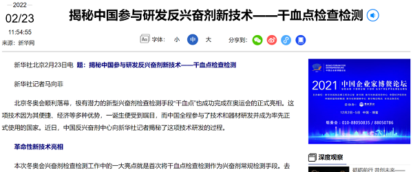 國藥器械等單位參與的干血點興奮劑檢查檢測項目由國際奧委會(IOC)、世界反興奮劑機構(WADA)、國際檢查機構(ITA)等組織和機構共同發起,中國反興奮劑中心牽頭,參與企業在規則制定、檢查要求、檢測技術和器材研發創新等各方面開展專業和高效的工作,保證這項技術第一時間在中國落地。