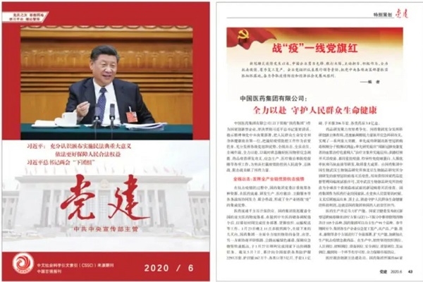 2020年6月,《黨建》雜志刊登中國醫藥集團有限公司文章《全力以赴 守護人民群眾生命健康》;2021年5月,作為黨史學習教育先進典型,集團典型案例入選共產黨員網站中央黨史學習教育官網“奮斗百年路 啟航新征程”專欄;“七一”前夕,集團黨史學習教育特色做法被寫入中央黨史學習教育簡報。組織集團戰疫先進典型開展各類宣講,集團領導班子成員面向基層黨組織講授專題黨課30余次,提升基層黨組織發展活力。