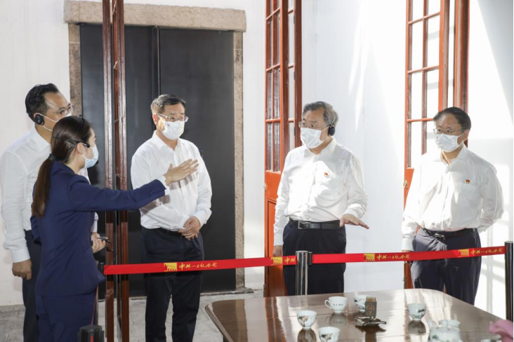 駐足于中共一大會址的實景陳設(shè)前,劉敬楨向講解員詳細詢問了解一大召開當時當?shù)睾团c會人員的具體情況,與同行的黨員干部就有關(guān)史實細節(jié)進行深入交流。他指出,101年前在上海租界的這幢小房子里,當時僅有50余名黨員的中國共產(chǎn)黨,選派13名代表召開了黨的第一次全國代表大會,創(chuàng)造了開天辟地的大事變;歷經(jīng)百年風(fēng)雨滄桑,中國共產(chǎn)黨取得了彪炳史冊的偉大成就,鍛造成為擁有9600多萬名黨員的世界第一大黨,如今恰是風(fēng)華正茂,必將領(lǐng)導(dǎo)人民實現(xiàn)中華民族偉大復(fù)興的中國夢。