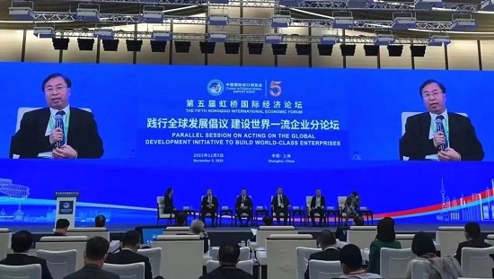 11月5日下午,劉敬楨董事長與董增賀副總經(jīng)理應(yīng)邀出席第五屆虹橋國際經(jīng)濟(jì)論壇“踐行全球發(fā)展倡議,建設(shè)世界一流企業(yè)”分論壇。論壇由商務(wù)部、國務(wù)院國資委、聯(lián)合國全球契約組織聯(lián)合主辦。國務(wù)院國資委黨委委員、秘書長彭華崗,聯(lián)合國助理秘書長、聯(lián)合國全球契約組織總干事桑達(dá)·奧佳博出席并致辭。劉敬楨董事長受邀參加“踐行全球發(fā)展倡議,建設(shè)世界一流企業(yè)”行動計劃及成果發(fā)布,與中外知名企業(yè)、國際組織負(fù)責(zé)人及知名專家學(xué)者就“攜手抗疫、維護(hù)全球產(chǎn)業(yè)供應(yīng)鏈穩(wěn)定、加強(qiáng)交流合作”等方面進(jìn)行研討。