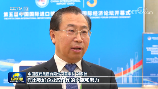 11月4日晚,國藥集團黨委書記、董事長劉敬楨應邀出席開幕式并在進博會上接受中央廣播電視總臺《新聞聯播》采訪。劉敬楨表示:作為我們行業的國家隊、主力軍和頂梁柱,繼續加大科技攻關和產業成果的轉化,為打造人類命運共同體和人類衛生健康共同體作出我們企業應該作的貢獻和努力。
