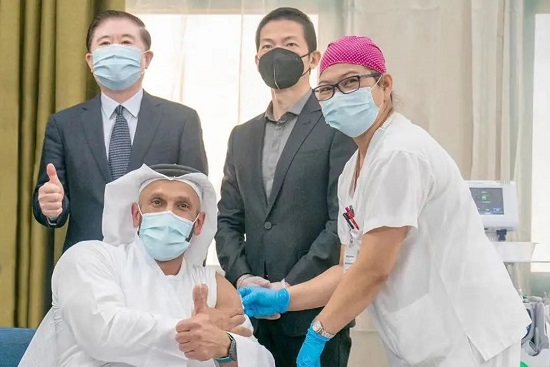 2020年7月15日,阿布扎比衛生局局長阿卜杜拉·哈米德作為國藥集團全球首個新冠疫苗三期臨床試驗的首位志愿者參與試驗。